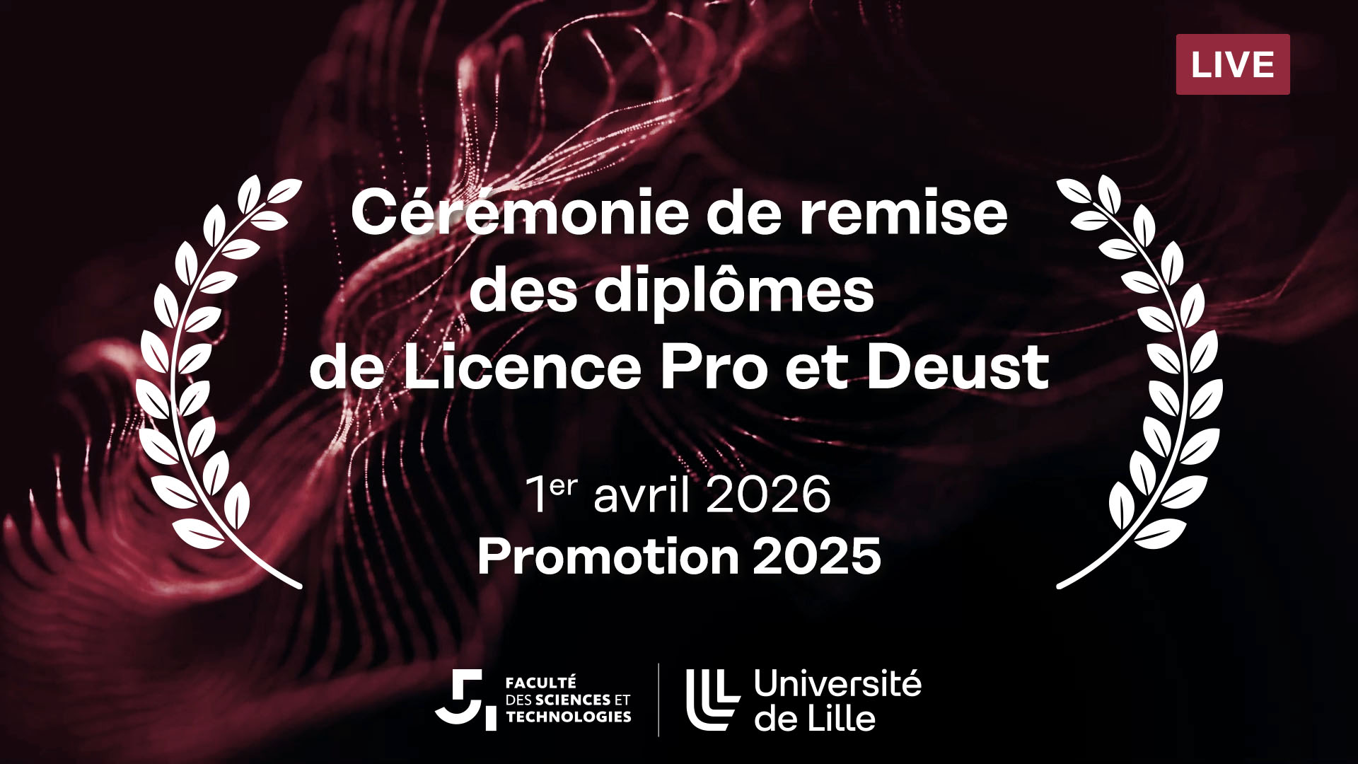 Cérémonie de remise des diplômes de Licence Pro et Deust de la FST (Faculté des sciences et technologies) Prévu le 01 avril 2026 à 18:00